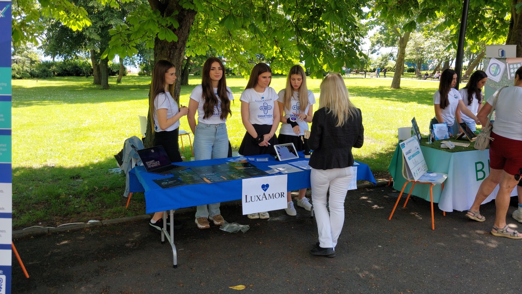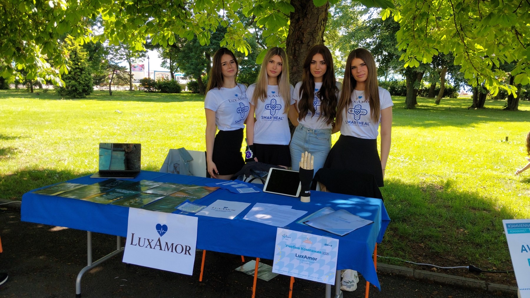 LUXAMOR са четири момичета от 11 А клас: Ерика Добрева, президент на компанията, Алина Стоянова, Катрин Петрова и Нели Капио. Съдружничките установиха добро партньорство с бизнес-инкубатор и творчески хъб „Резонатор“, който помогна за реализацията на работещ прототип.