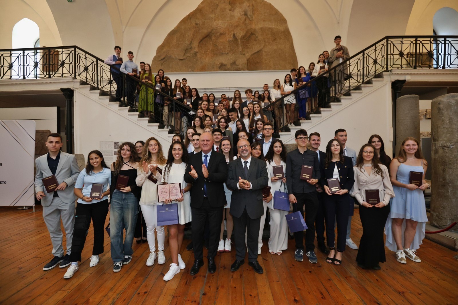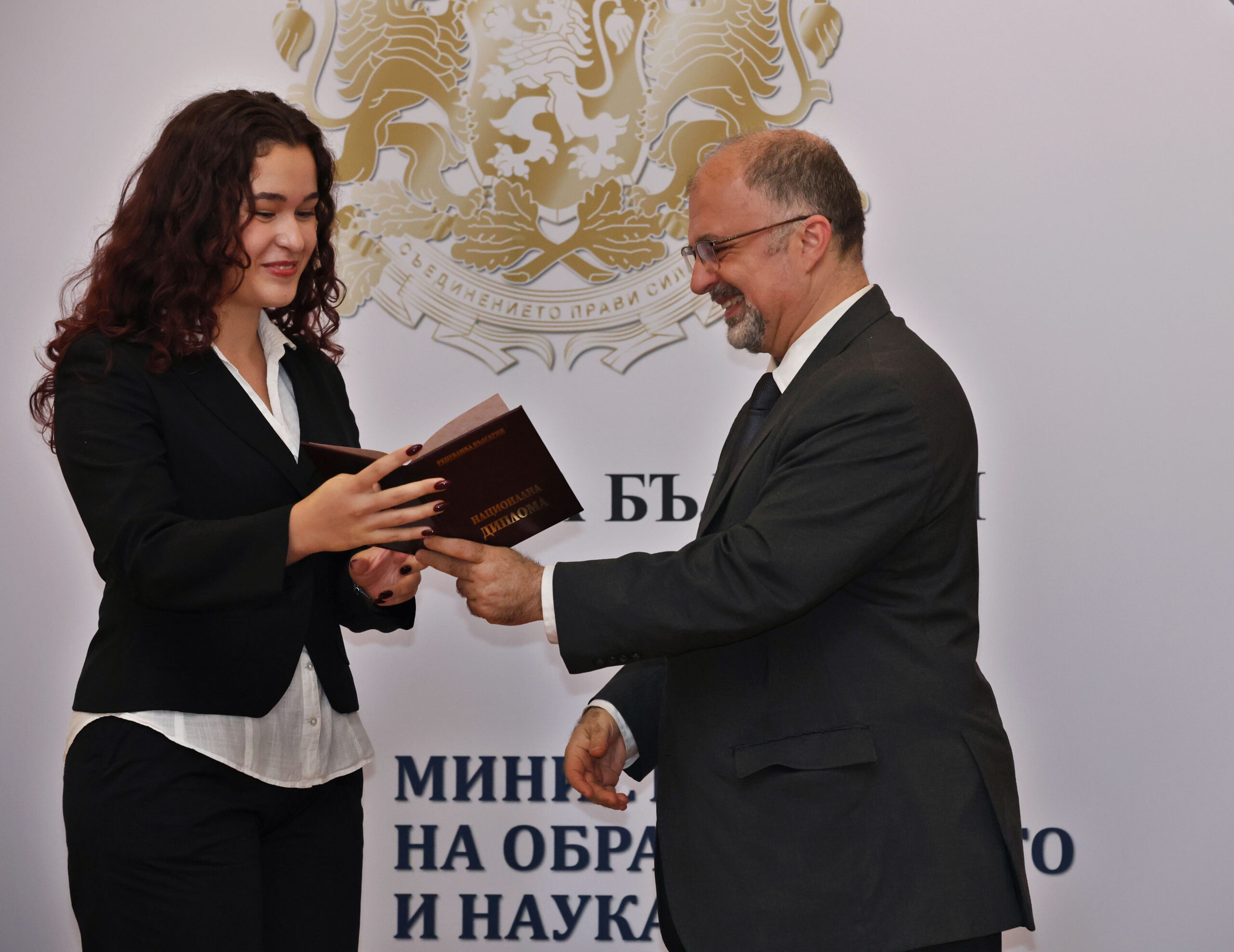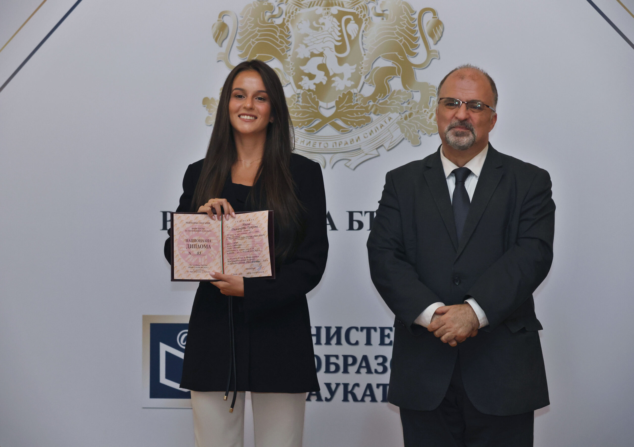 С огромна радост поздравяваме зрелостничките Ивана Петрова и Камелия Соколова за удостояването им с почетното отличие „Национална диплома“, за изключителни постижения в образованието, принос и изявени способности в областта на науките, технологиите, изкуствата и спорта. Те са измежду отличените 120 ученици от випуск 2024 от цялата страна. Церемонията по връчването на дипломите се състоя в Националния археологически музей в София и на нея присъстваха министър-председателят Димитър Главчев, министърът на образованието Галин Цоков и министърът на културата Найден Тодоров. Браво Ивана и Ками! Гордеем се с вас!